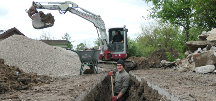 Es wird warm im Auhof… spätestens ab Herbst. Aktuell laufen die Vorarbeiten für unsere neue Hackschnitzel-Heizanlage. Bislang wurde der Auhof mit Öl beheizt. Das soll sich zukünftig ändern. Darum werden im Garten gerade die Fundamente gelegt, auf welchen anschließend unsere neue Heizungsanlage installiert werden kann, inklusiv Hackschnitzel-Bunker. An der Planung war P. Anton aktiv beteiligt, unsere Novizen helfen in ihrer alltäglichen Arbeitszeit, und zum Glück haben wir mit P. Tobias einen eigenen Hobby-Baggerfahrer!