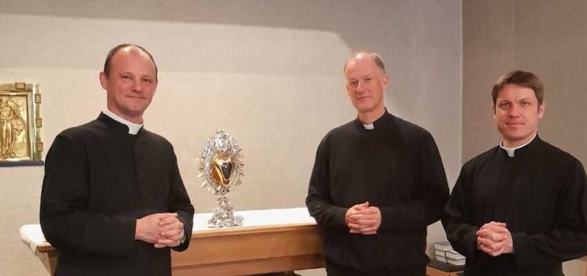 Im Rahmen des Besuches unseres Generaloberen zwischen dem 30. April und dem 5. Mai in unserer Niederlassung in Belgien stand eine gemeinsame Fahrt nach Mechelen, die Kathedralstadt des hiesigen Erzbischofs, auf dem Programm. Die dortige Jesuitenresidenz bewahrt das Herz des heiligen Johannes Berchmans als Reliquie auf. Dank eines freundlichen Jesuiten konnte unsere Mitbrüder dort das Herz des Heiligen verehren.