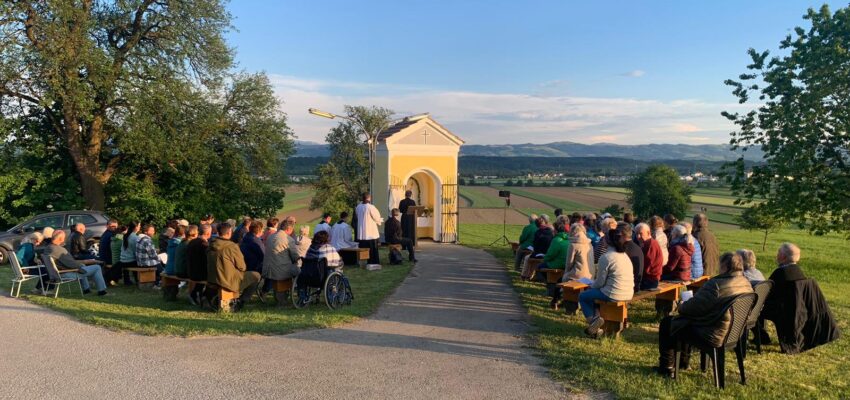 In unserer Pfarrei St. Georgen in Österreich wird ab dem 13. Mai jeden Monat (bei schönem Wetter) bei der kleinen Kapelle am „Gumpenberg“ die Hl. Messe zu Ehren der Mutter Gottes gefeiert – nach Möglichkeit unter Teilnahme unserer Seminaristen.