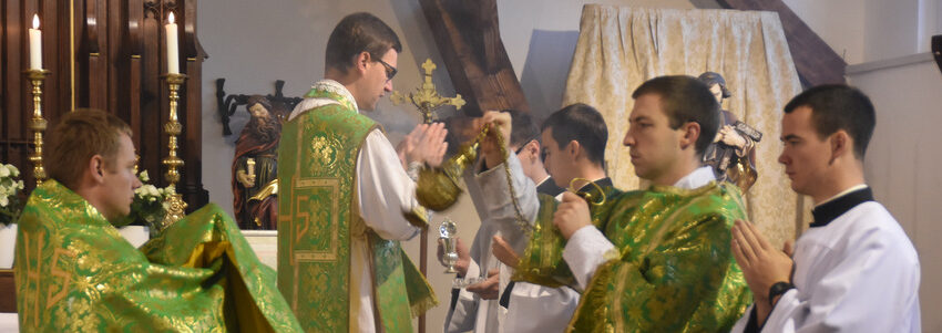 Mitte und Höhepunkt des gesamten christlichen Lebens und eines jeden Tages ist die Feier der hl. Messe, die Erneuerung des Kreuzesopfers Jesu Christi. Darum sehen die Mitglieder der SJM in der würdigen Zelebration der hl. Messe ihre erste und schönste Aufgabe. Sie ist das Zentrum ihrer Spiritualität; aus ihr schöpfen sie die Kraft für ihre Arbeit, sie ist das wichtigste Element ihres Wirkens für die Ehre Gottes und das Heil der Seelen. Von Anfang an hat sich die SJM von der Kirche die Erlaubnis erbeten, die hl. Messe nicht nur nach dem neuen Messbuch Papst Pauls VI. zu feiern, sondern auch das Missale von 1962 zu verwenden. P. Hönisch, der Gründer der SJM, sprach oft von einem sog. „Biritualismus“. Er selbst wurde 1963 zum Priester geweiht und war Zeitzeuge der liturgischen Veränderungen. Als junger Ordensmann hat er z. B. darunter gelitten, wenn Priester die hl. Messe unter dem Vorwand der Objektivität überhastet feierten oder einen übertriebenen Ritualismus praktizierten. So empfand er die Liturgiereform zunächst als Erleichterung.